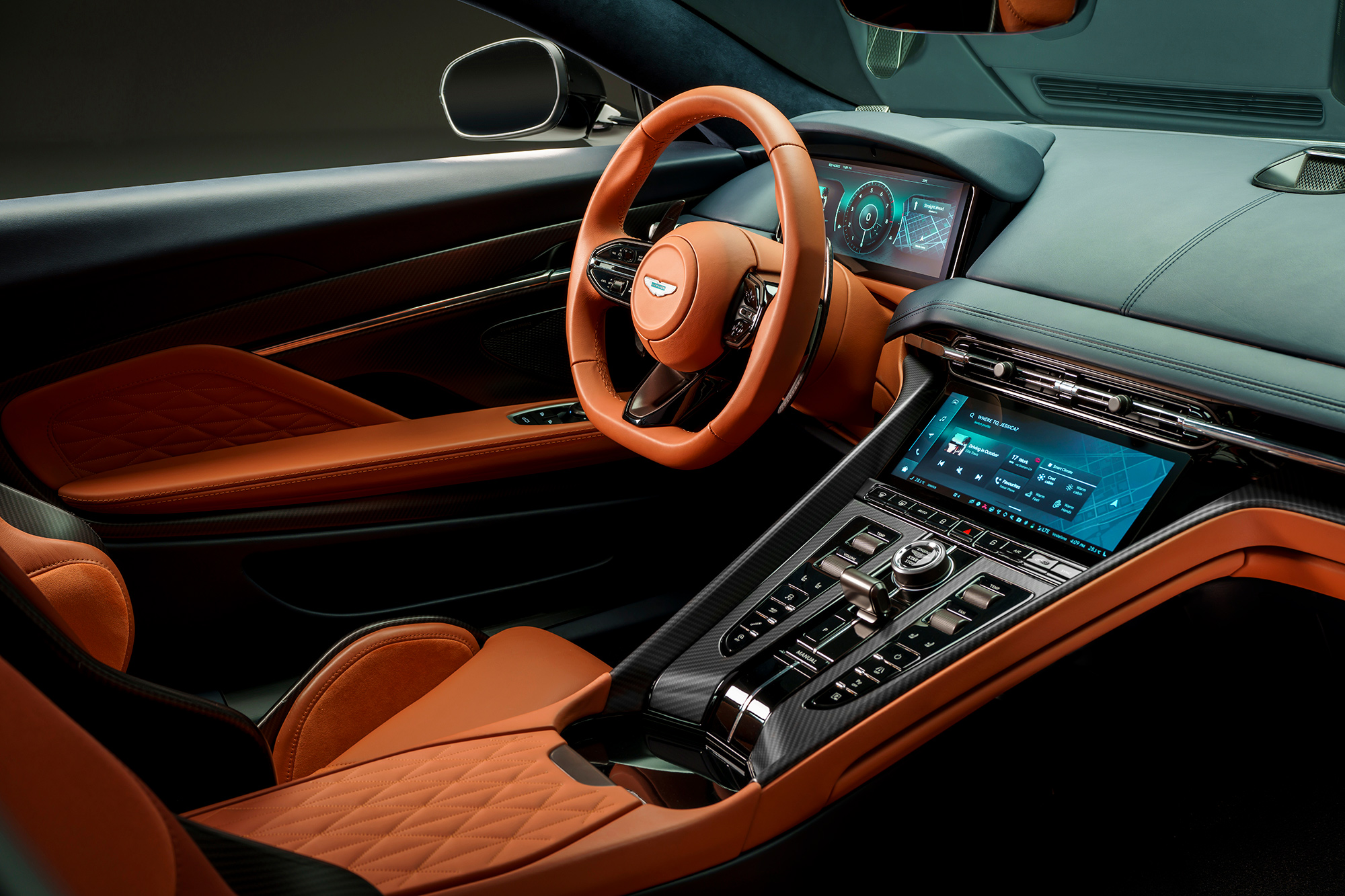 A debut with the DB12. Introducing the Aston Martin of infotainment systems. Designed, engineered and tailored in house. Ready-made, for the first time, with voice control. Set to bring satellite navigation, your favourite songs and any app under your control. With just your voice alone.