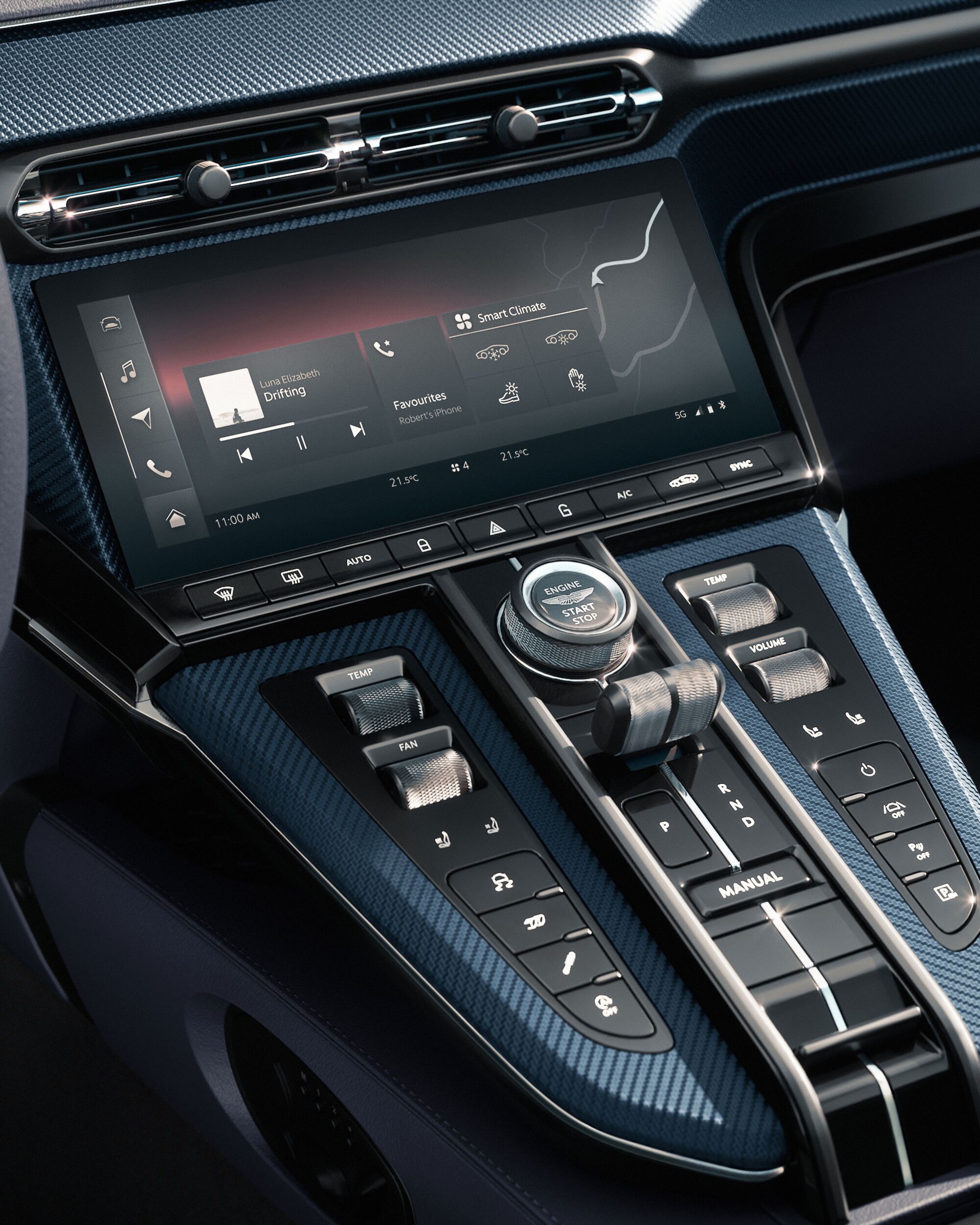 The heart of your Roadster is the core of your open-top driving experience. Clean, unbroken lines. Stylish, slender air vents. A striking yet elegant environment. Under a stunning yet evolving skyline. Fixed around the centre console and beginning with an engaging push of the starter button. The tactile haptics of a metal rotary dial let you explore and savour five different drive modes. More detailed commands can be actioned by the touch of a screen.