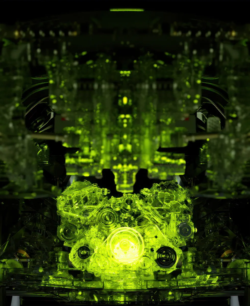 Valhalla’s groundbreaking design showcases a Formula 1® informed roof snorkel, where fantastic form meets flowing function. Housed in a built-in channel within the lowered roofline, it funnels air to three critical systems: the turbochargers, the Air Charged Air Coolers (ACACs) and directly into the hot ‘V’ configuration within the V8 itself. Either side of the eye-striking roof snorkel, are two sculpted, aero-focused side access hatches, which open to reveal the fuel filler and charge port.