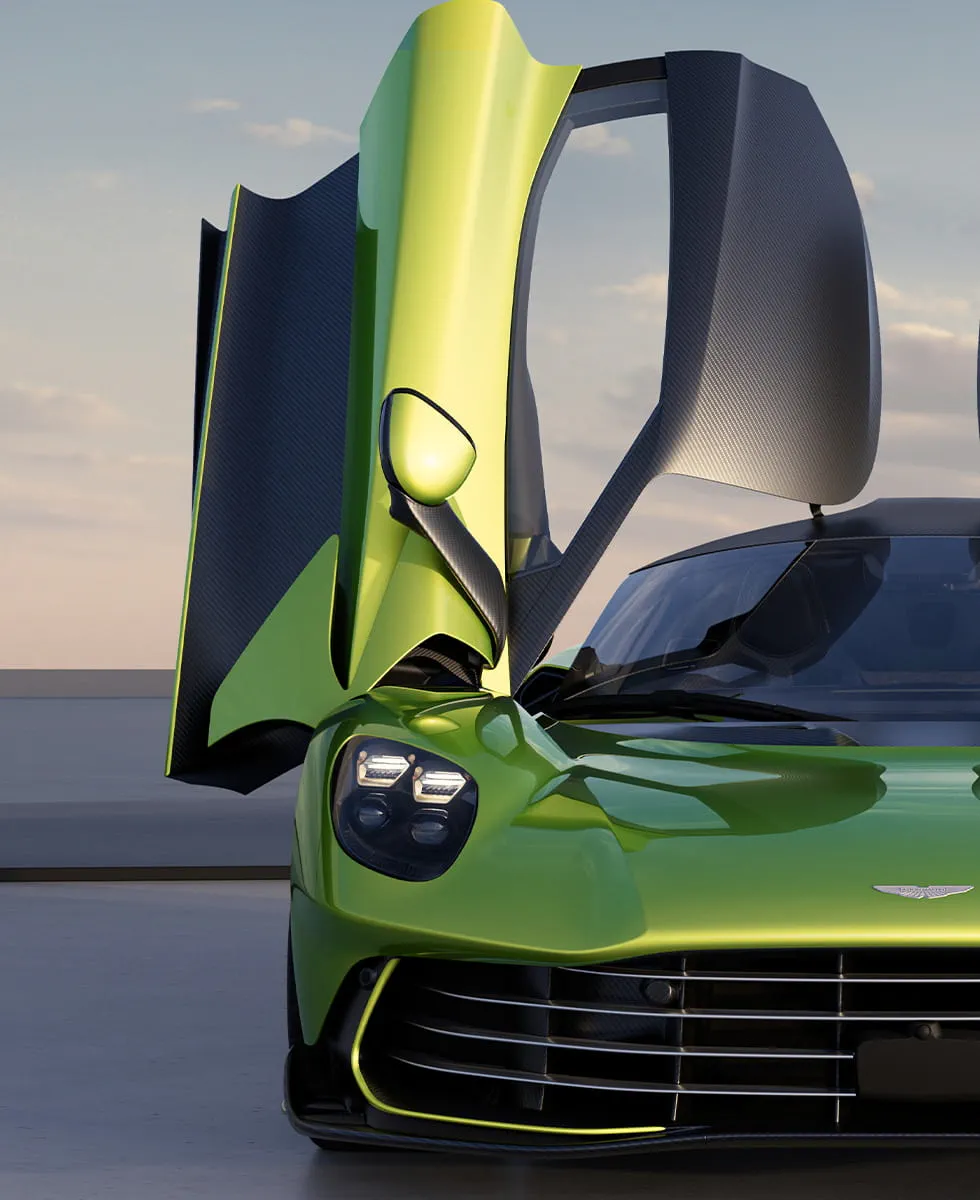 The extensive cooling network addresses Valhalla’s heat management demands due to the colossal power generated. Formula 1® inspired door turning vanes and gills redirect airflow along the side of the sculpted carbon body and into the rear mounted oil coolers.
